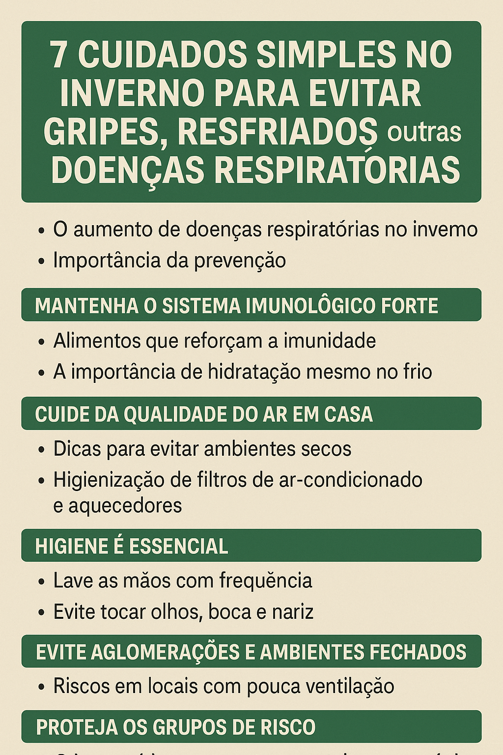 Com a chegada do frio, as doenças respiratórias se tornam mais comuns. Veja 7 cuidados simples e eficazes para proteger sua saúde no inverno.