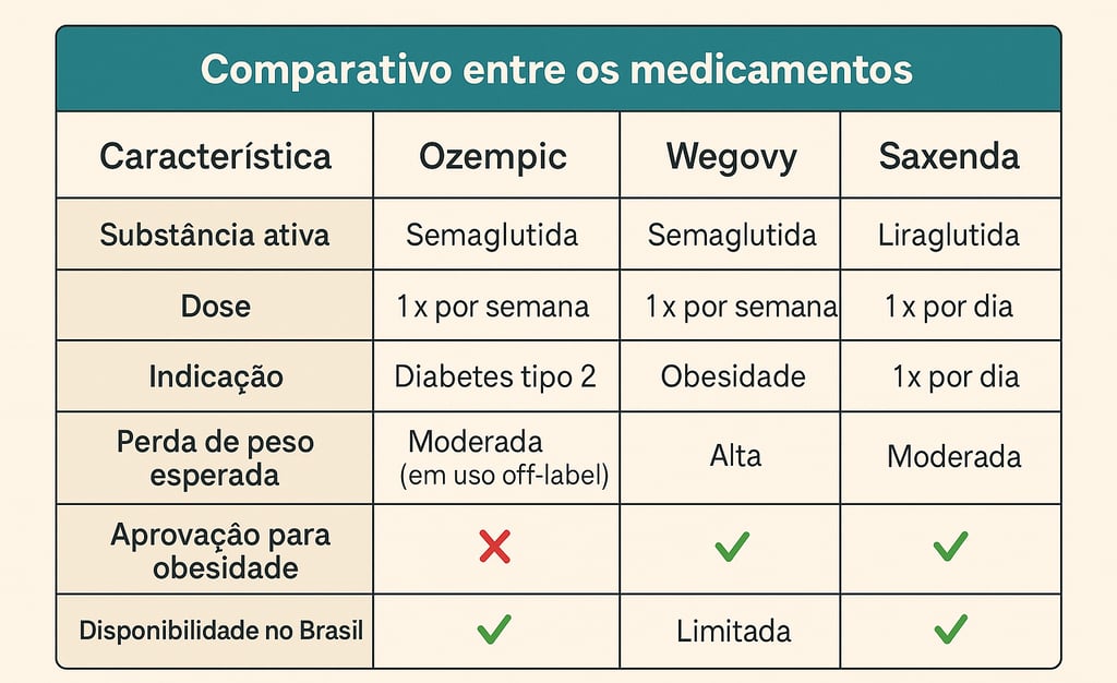 🔎 Este conteúdo tem caráter exclusivamente informativo e não substitui a consulta médica. Medicamentos como Ozempic, Wegovy e Saxenda devem ser utilizados apenas com prescrição e acompanhamento profissional.