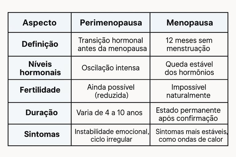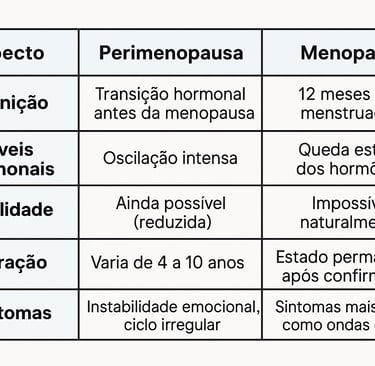 A verdade é que, apesar de estarem relacionadas, perimenopausa e menopausa são fases diferentes — e entender cada uma delas pode fazer toda a diferença na sua saúde, bem-estar e autoestima.